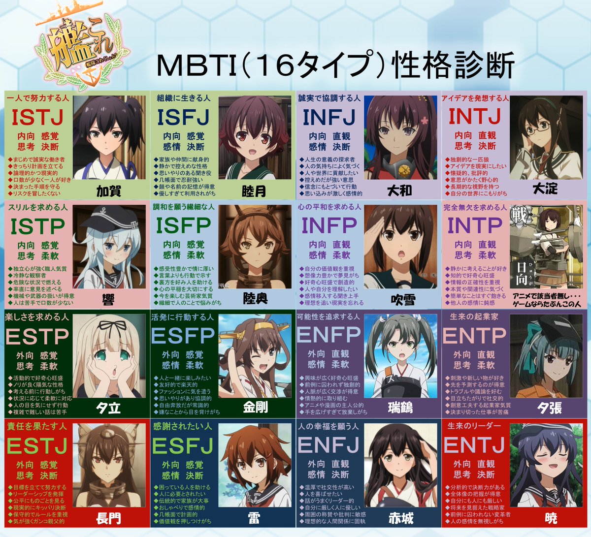 Entper 艦これでmbti 16タイプ 性格診断 性格設定はアニメ優先にしています 艦これ